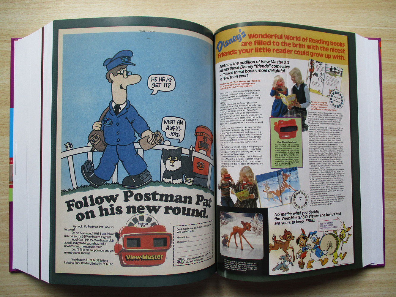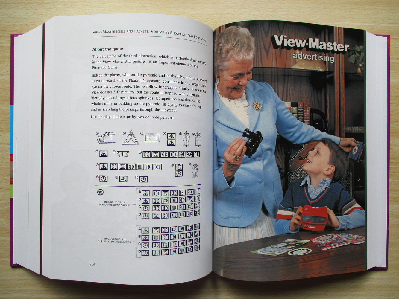Hardbound, 960 pages including two full-colour sections of 32 pages each on glossy paper: one section shows View-Master Products, and the other one is called “View-Master Advertising”.